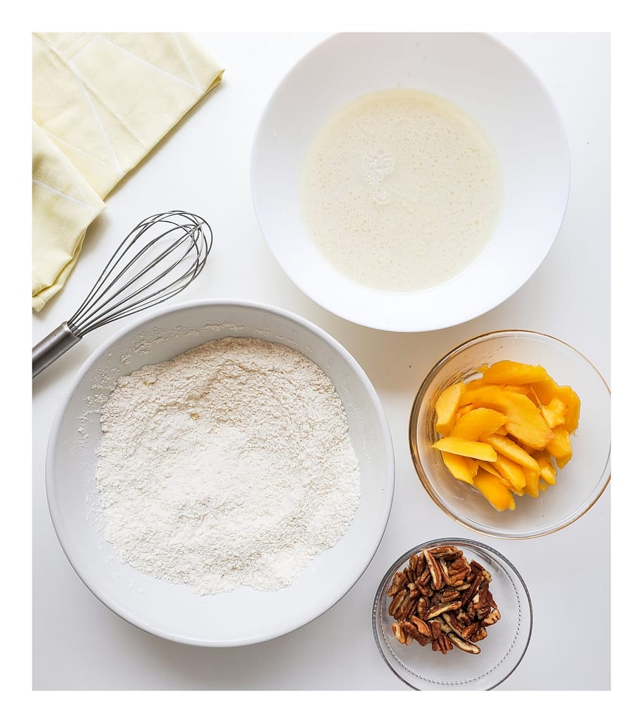 The recipe for these muffins is pretty simple. Just mix the dry ingredients in a bowl. In a separate bowl combine the wet ingredients. Add them to the dry and gently fold to mix. Be careful not to overmix or the muffin batter will become dense.