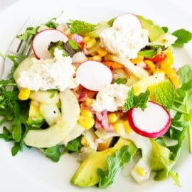 A lovely, healthy salad bursting with fresh seasonal produce and color. Perfect for a light lunch or served as an appetizer.