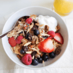The ultimate healthy and delicious breakfast cereal, Bircher Muesli, made with oats, apples, yogurt, nuts and fresh fruit, is sure to satisy.