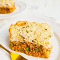 Spoon mixture into a small baking dish and top with grated vegan cheese and parsley. You can use breadcrumbs as well but I prefer using more cheese to increase its creamy cheesiness and to keep it gluten free.