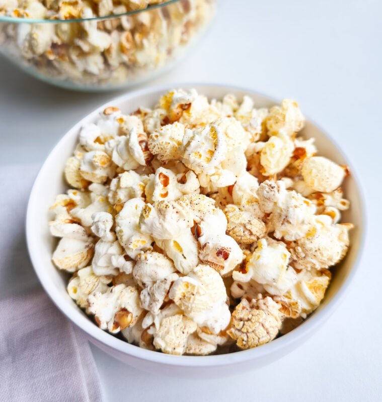 Now that fall is here, I am ready to enjoy anything cosy, fuss-free and cinnamon flavored. My favorite fall snack is popcorn because it is so satisfying, calming and healthy as well. I make it a few times a week and even occasionally for dinner if I’m feeling especially lazy. I sometimes flavour it with nutritional yeast, but recently I wanted something sweet and had read about people drizzling maple syrup on their popcorn. It sounded yummy, but I try to avoid sugar most of the time, so I came up with this sugar-free alternative.